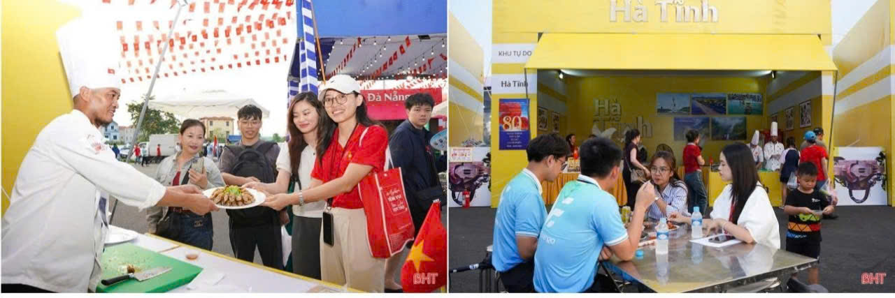 Ngoài ra, Hà Tĩnh cũng mang đến không gian triển lãm gian hàng ẩm thực, với nhiều món ăn đặc trưng hương vị quê nhà, như: ram chả cuốn, bánh mướt... mang lại cho du khách nhiều trải nghiệm.