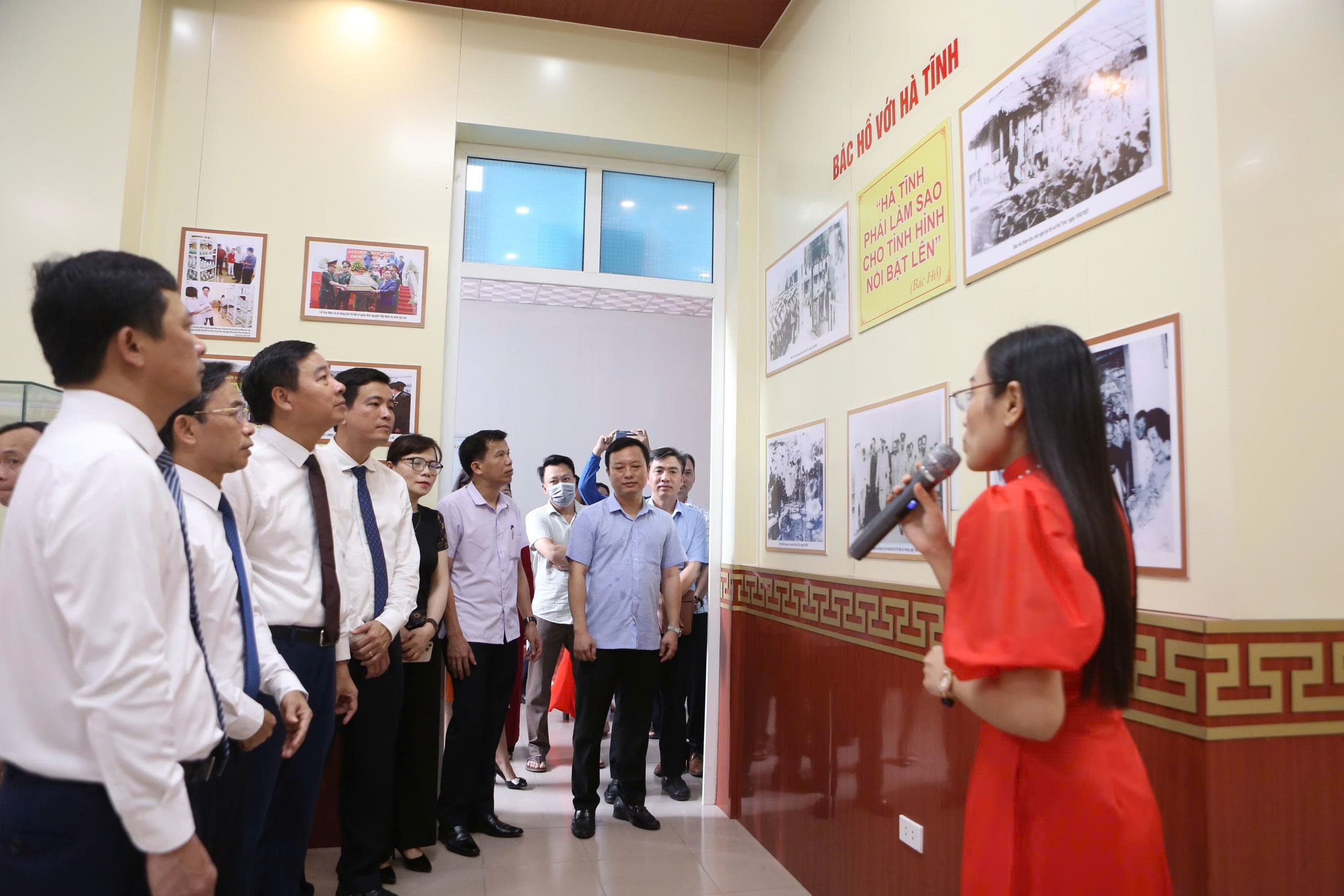 Đại biểu tham quan, nghe hướng dẫn thuyết minh tại trưng bày chuyên đề